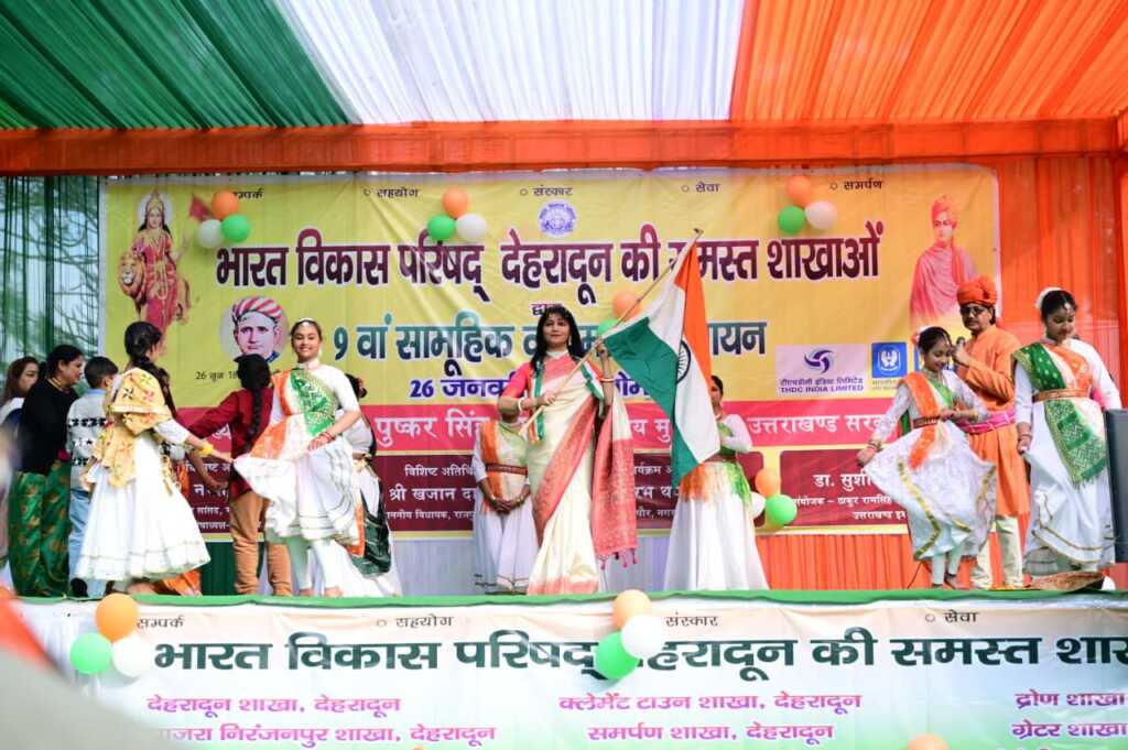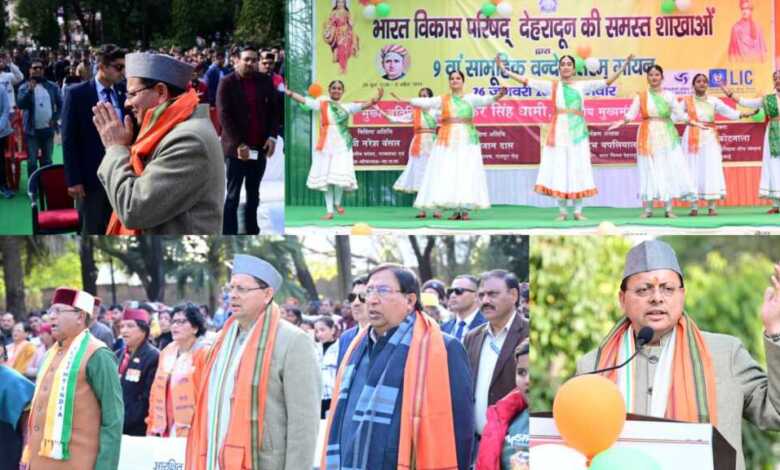 मुख्यमंत्री पुष्कर सिंह धामी ने गणतंत्र दिवस के अवसर पर देहरादून स्थित गांधी पार्क में भारत विकास परिषद द्वारा आयोजित सामूहिक वंदे मातरम् गायन कार्यक्रम में प्रतिभाग किया।