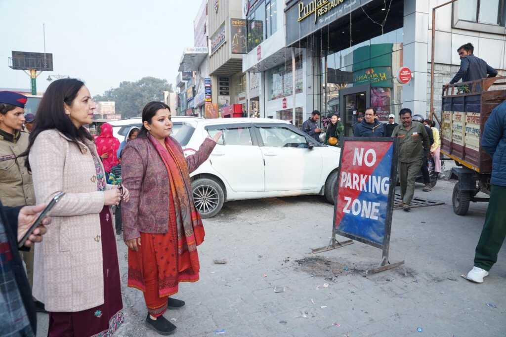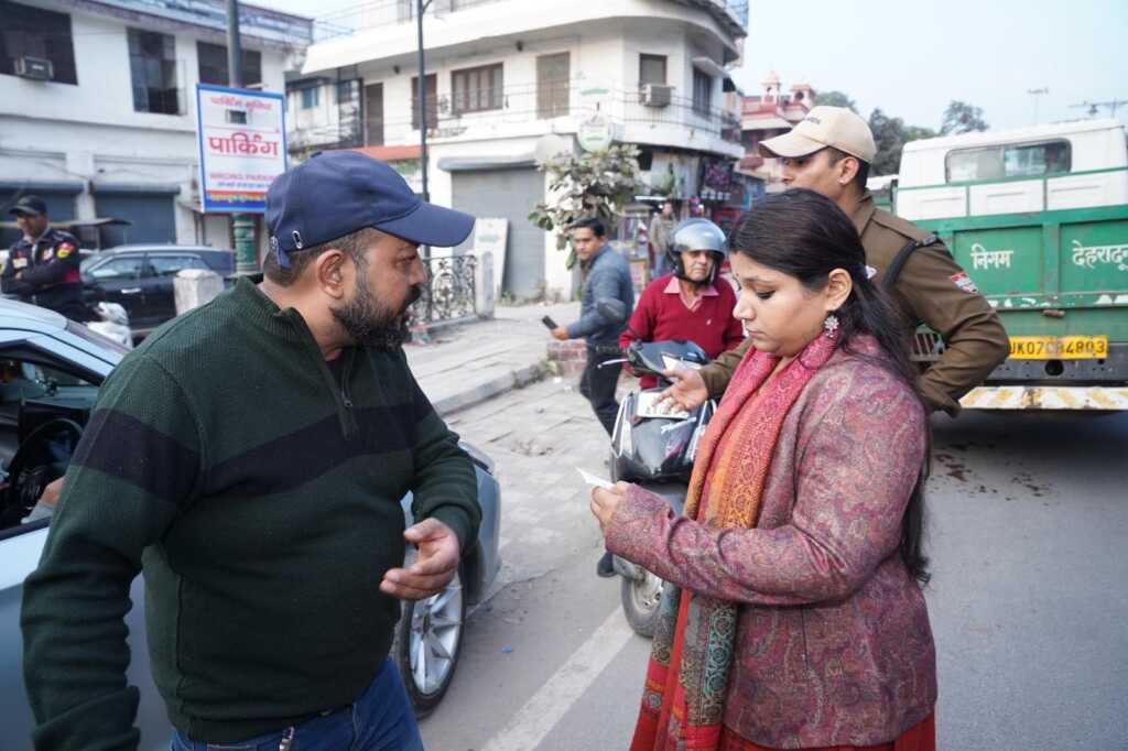 इसके अतिरिक्त सड़क फुटपाथ पर हुए अवैध पार्किंग एवं यातायात को बाधित करने वाले 75 वाहनों के विरूद्ध चालानी कार्यवाही की गयी। नगर आयुक्त महोदया द्वारा घंटाघर से राजपुर रोड़ तक नगर निगम की पार्किंग स्थलों का भी निरीक्षण किया गया।