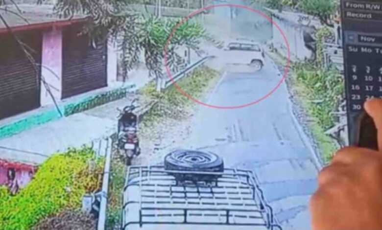 बुलेरो वाहन अनियंत्रित हो गया और घर की बाउंड्री वॉल तोड़ कर महिला को टक्कर मार दी।