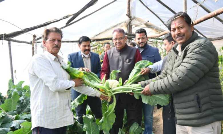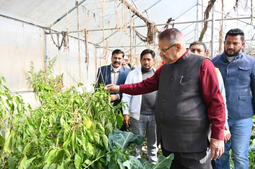 कृषि मंत्री गणेश जोशी ने भगरतौला में किसानों से किया संवाद, पॉलीहाउस क्लस्टर मॉडल की सराहना की