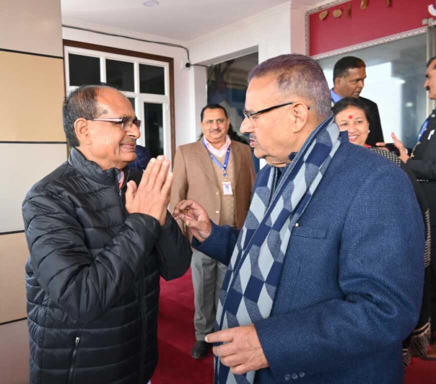जॉलीग्रांट एयर पोर्ट पर केंद्रीय कृषि मंत्री शिवराज सिंह चौहान का उत्तराखण्ड आगमन पर स्वागत एवं अभिनंदन करते प्रदेश के कृषि मंत्री गणेश जोशी