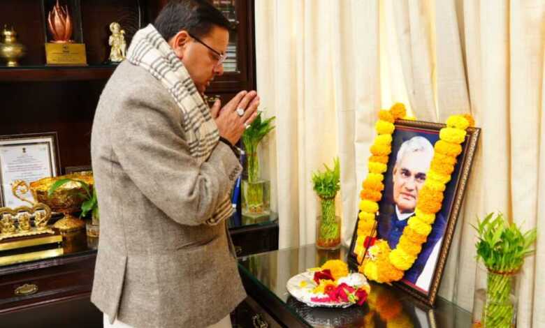 मुख्यमंत्री पुष्कर सिंह ने पूर्व प्रधानमंत्री, भारत रत्न अटल बिहारी वाजपेयी की जयंती पर मुख्यमंत्री कैंप कार्यालय में उनके चित्र पर श्रद्धासुमन अर्पित करते हुए उनको नमन किया।