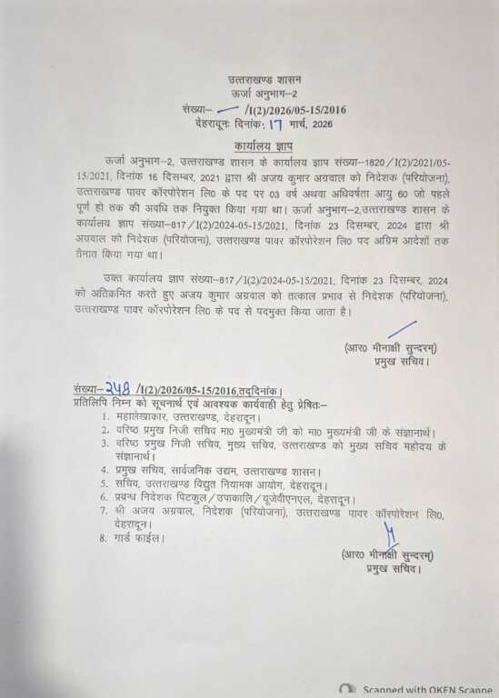 उत्तराखंड में धामी सरकार ने ऊर्जा सेक्टर में बड़ा प्रशासनिक फेरबदल करते हुए तीनों प्रमुख ऊर्जा निगमों में एक साथ बड़े बदलाव किए हैं। इस फैसले को सरकार का सख्त और निर्णायक कदम माना जा रहा है।