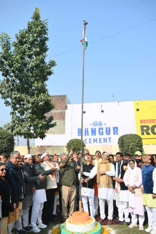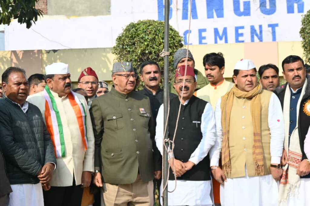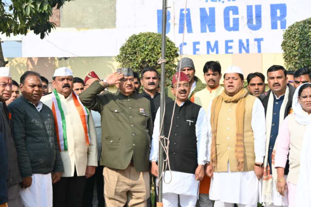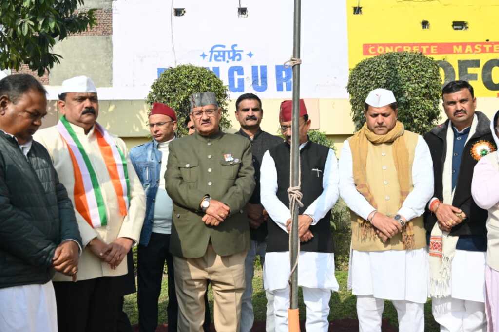 77वें गणतंत्र दिवस पर रुद्रपुर स्थित भाजपा जिला कार्यालय में राष्ट्रीय ध्वज फहराते कैबिनेट मंत्री गणेश जोशी