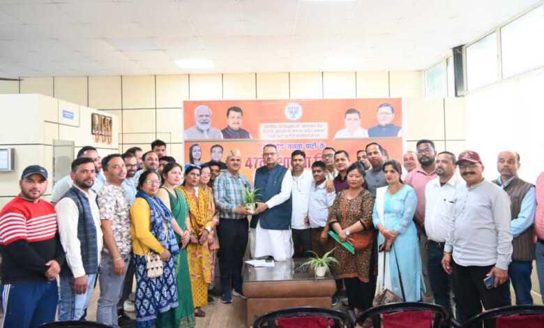 पीएम के उत्तराखण्ड आगमन को लेकर मसूरी विधानसभा क्षेत्र के जनप्रतिनिधियों के साथ बैठक करते कैबिनेट मंत्री गणेश जोशी