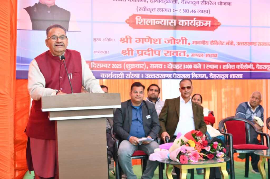 देहरादून, 05 दिसम्बर। कैबिनेट मंत्री गणेश जोशी ने आज मसूरी विधानसभा क्षेत्र के हाथीबड़कला़ स्थित शक्ति कॉलोनी में ₹303.46 लाख की लागत से स्वीकृत सीवरेज योजना का विधिवत शिलान्यास किया। इस परियोजना के पूरा होने से क्षेत्र के 1300 से अधिक परिवारों को सीवरेज समस्या से राहत मिलेगी।