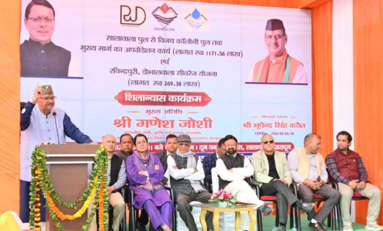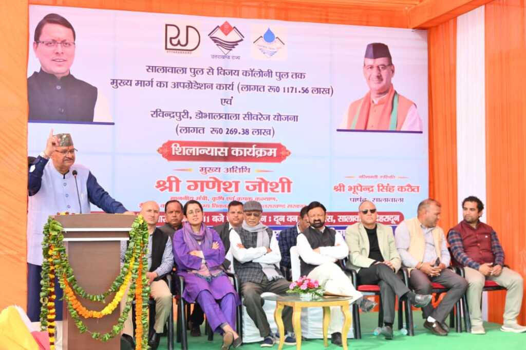 मसूरी विधानसभा क्षेत्र के अंतर्गत लगभग 20 करोड़ की लागत से विभिन्न विकास कार्यों का शिलान्यास करते कैबिनेट मंत्री गणेश जोशी