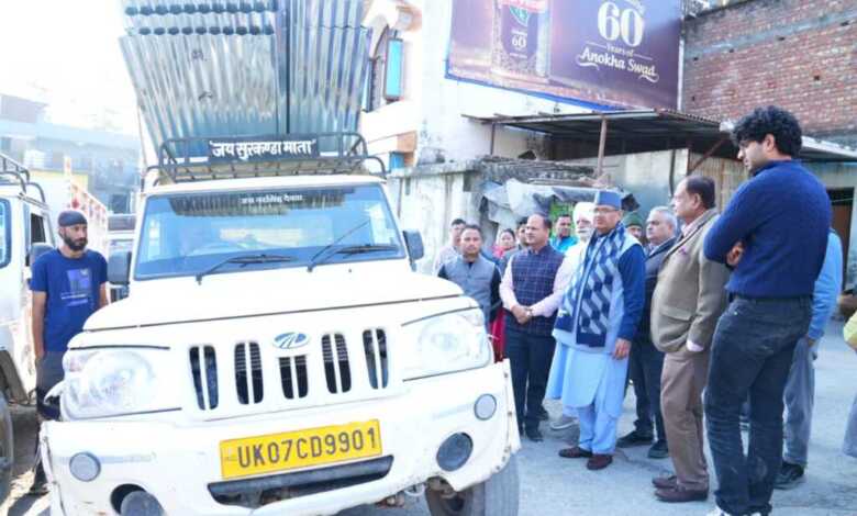 देहरादून, 15 दिसम्बर। कैबिनेट मंत्री गणेश जोशी ने सोमवार को सहस्त्रधारा क्षेत्र में सितम्बर माह में आई दैवीय आपदा से प्रभावित 12 परिवारों को उनके आवास एवं दुकानों के पुनर्निर्माण के लिए निर्माण सामग्री जैसे ईंट, सरिया, टिन चादर आदि के वाहन भेजकर उन्हें प्रदान किया।