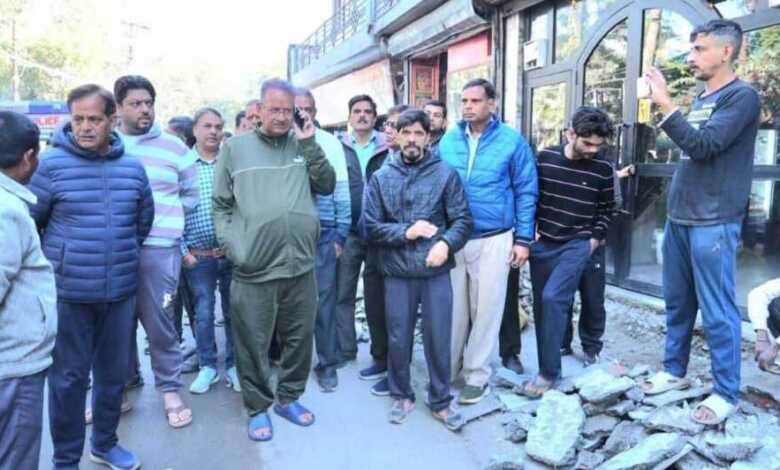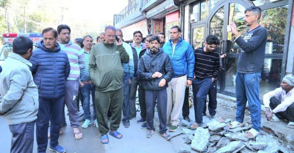 डाकरा बाजार में सुधारीकरण और चौड़ीकरण कार्यों का जायजा लेते कैबिनेट मंत्री गणेश जोशी