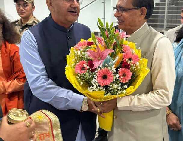 उत्तराखंड आगमन पर केंद्रीय कृषि मंत्री शिवराज सिंह चौहान का स्वागत करते कैबिनेट मंत्री गणेश जोशी