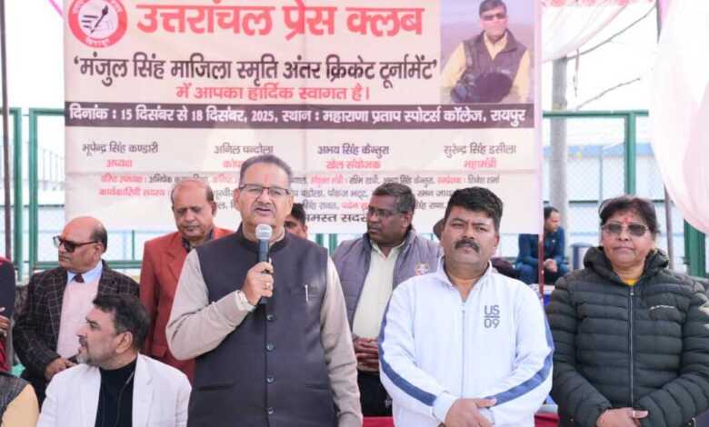 देहरादून, 18 दिसम्बर। कैबिनेट मंत्री गणेश जोशी ने आज महाराणा प्रताप स्पोर्ट्स कॉलेज क्रिकेट स्टेडियम, रायपुर में उत्तरांचल प्रेस क्लब द्वारा आयोजित दिवंगत पत्रकार मंजुल सिंह माजिला की स्मृति में आयोजित अंतर क्रिकेट प्रतियोगिता के फाइनल मैच में मुख्य अतिथि के रूप में प्रतिभाग किया।