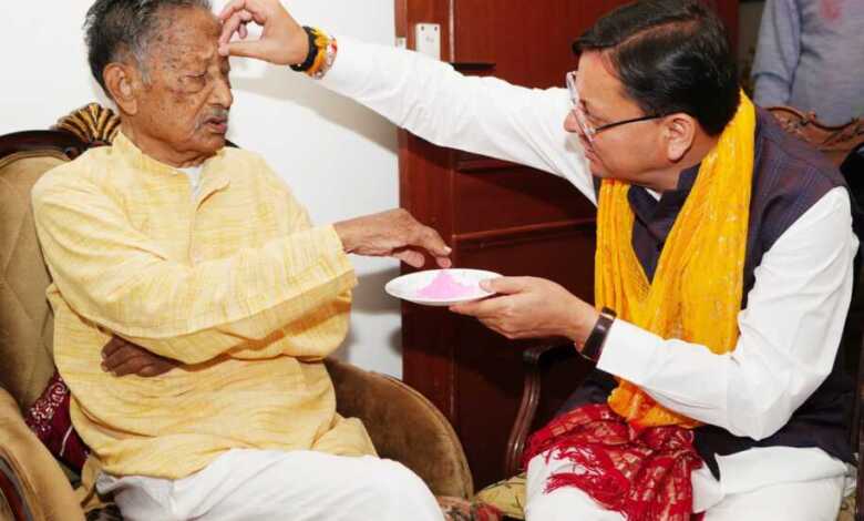 मुख्यमंत्री पुष्कर सिंह धामी ने सोमवार को पूर्व मुख्यमंत्री मेजर जनरल भुवन चंद्र खंडूड़ी (से.नि) से देहरादून स्थित उनके आवास में मुलाकात कर होली की शुभकामनाएं दीं।