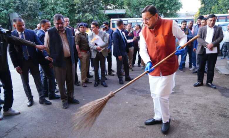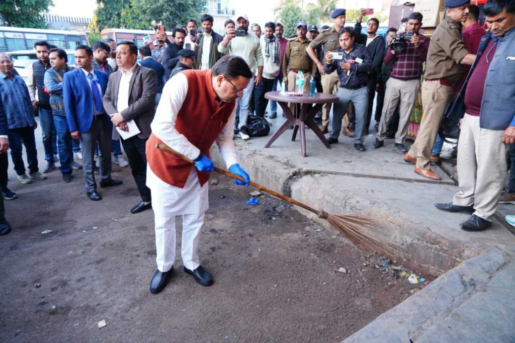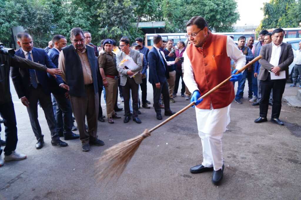 मुख्यमंत्री धामी का आईएसबीटी देहरादून में औचक निरीक्षण, गंदगी देखकर खुद उठाई झाड़ू