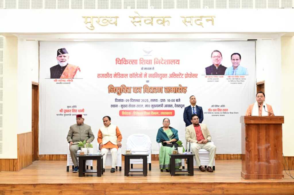 मुख्यमंत्री पुष्कर सिंह धामी ने नव नियुक्त असिस्टेंट प्रोफेसर्स को शुभकामनाएं देते हुए कहा कि ये अवसर चिकित्सा के क्षेत्र को सशक्त बनाने की दिशा में महत्वपूर्ण कदम सिद्ध होगा। मुख्यमंत्री ने सभी से आग्रह करते हुए कहा कि सभी अपने छात्रों को गुणवत्तापूर्ण शिक्षा और प्रशिक्षण प्रदान करने के साथ उनके भीतर संवेदनशीलता,