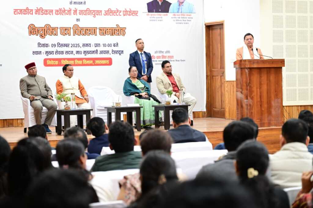 मुख्यमंत्री पुष्कर सिंह धामी ने मंगलवार को मुख्य सेवक सदन, मुख्यमंत्री आवास, देहरादून में आयोजित कार्यक्रम में प्रतिभाग करते हुए चिकित्सा सेवा चयन बोर्ड के माध्यम से चयनित राजकीय मेडिकल कॉलेजों में 142 असिस्टेंट प्रोफेसर्स को नियुक्ति पत्र वितरित किए।