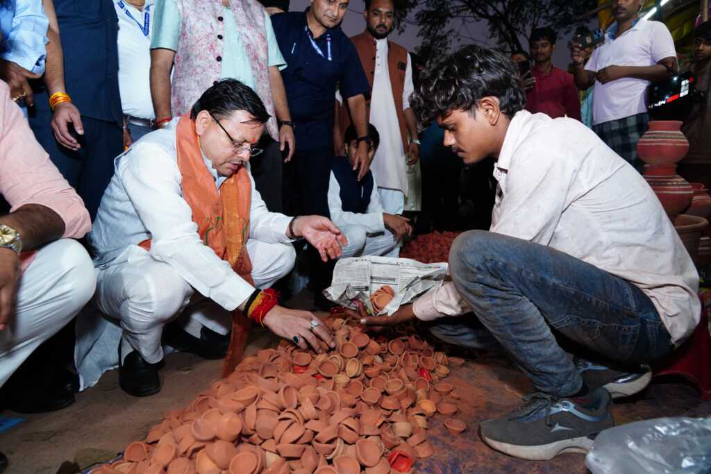 मुख्यमंत्री पुष्कर सिंह धामी ने दीपावली पर्व के अवसर पर आज देहरादून स्थित चकराता रोड की स्थानीय दुकानों से मिट्टी के दीये, बर्तन एवं अन्य पारंपरिक स्वदेशी सामानों की खरीदारी की।