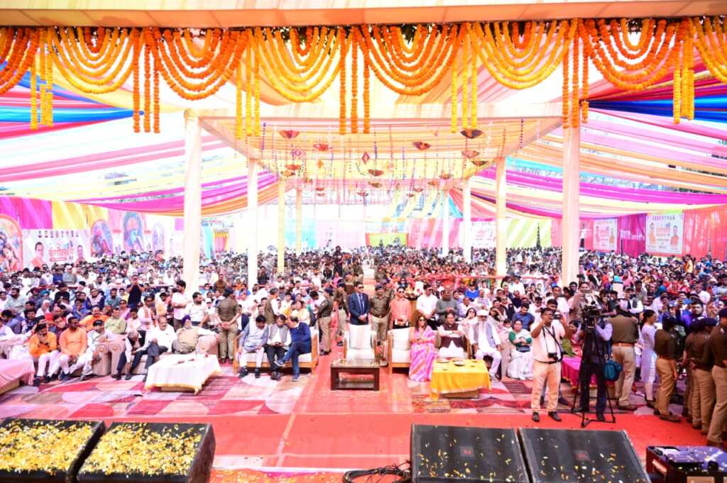 होली मिलन समारोह में जनता ने पुष्पवर्षा कर मुख्यमंत्री का भव्य स्वागत किया।