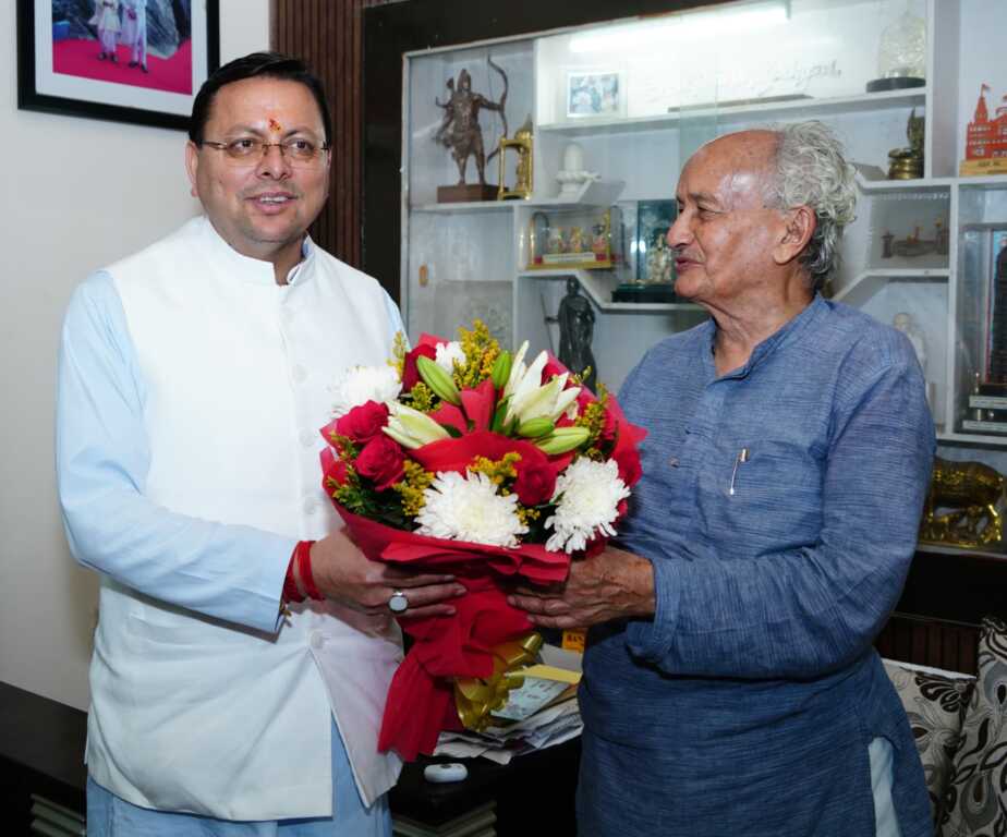 मुख्यमंत्री पुष्कर सिंह धामी ने आज पूर्व मुख्यमंत्री एवं महाराष्ट्र के पूर्व राज्यपाल भगत सिंह कोशियारी के डिफेन्स कॉलोनी स्थित निवास पर पहुंचकर उन्हें धनतेरस और दीपावली की बधाइयां एवं शुभकामनाएं दीं।