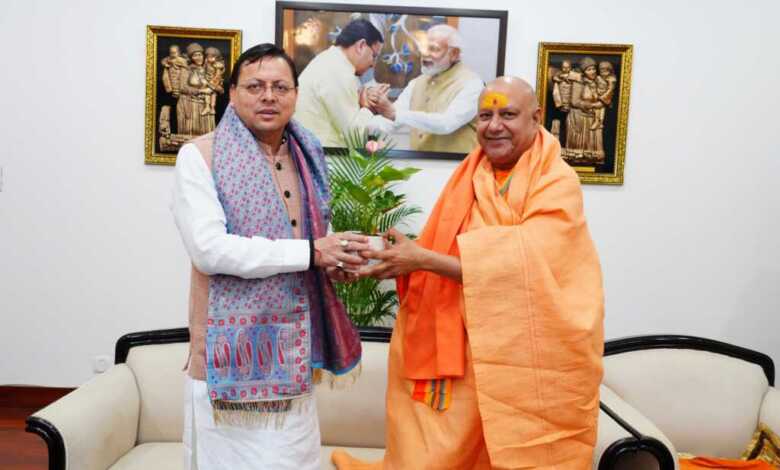 मुख्यमंत्री धामी ने महामंडलेश्वर स्वामी यतीन्द्रानंद गिरि महाराज का स्वागत करते हुए कहा कि संत-महात्माओं के आशीर्वाद से समाज में सकारात्मक ऊर्जा का संचार होता है।