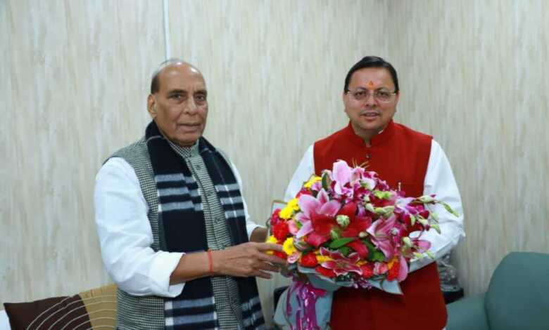 मुख्यमंत्री पुष्कर सिंह धामी ने नई दिल्ली में केंद्रीय रक्षा मंत्री राजनाथ सिंह से शिष्टाचार भेंट की। मुख्यमंत्री ने केंद्रीय मंत्री से एयर फोर्स ऑडिट ब्रांच देहरादून में ही यथावत रहने देने और ग्वालदम–नंदकेसरी–थराली–देवाल–मुन्दोली–वाण मोटर मार्ग के रख-रखाव का कार्य लोक निर्माण विभाग से ही कराए जाने का अनुरोध किया।