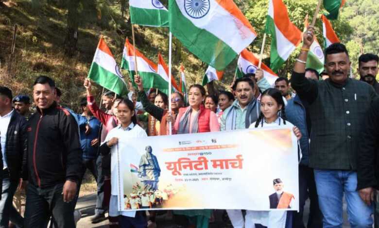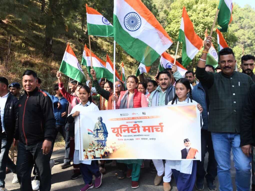 सोमेश्वर, 23 नवंबर। लोह पुरुष सरदार वल्लभभाई पटेल की 150वीं जयंती के अवसर पर रविवार को सोमेश्वर में ‘रन फॉर यूनिटी’ पैदल यात्रा का आयोजन किया गया। कैबिनेट मंत्री रेखा आर्या अपने निजी आवास से शहीद स्मारक तक आयोजित इस यात्रा में सम्मिलित हुई।