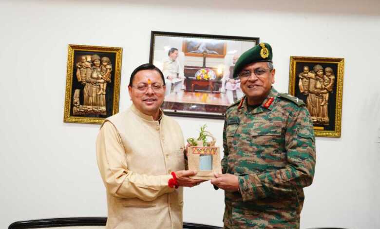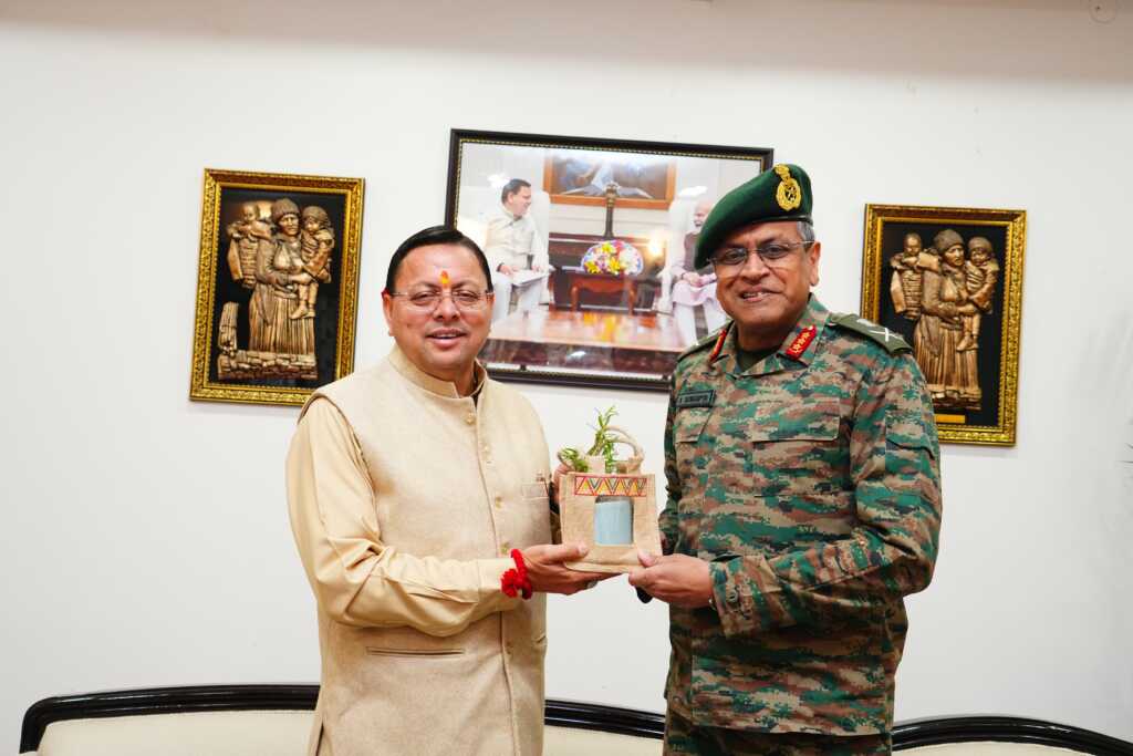मुख्यमंत्री पुष्कर सिंह धामी से गुरुवार को मुख्यमंत्री आवास में मध्य कमान के जनरल ऑफिसर कमांडिंग इन चीफ ( जीओसी इन सी) लेफ्टिनेंट जनरल अनिंद्य सेनगुप्ता ने शिष्टाचार भेंट की।