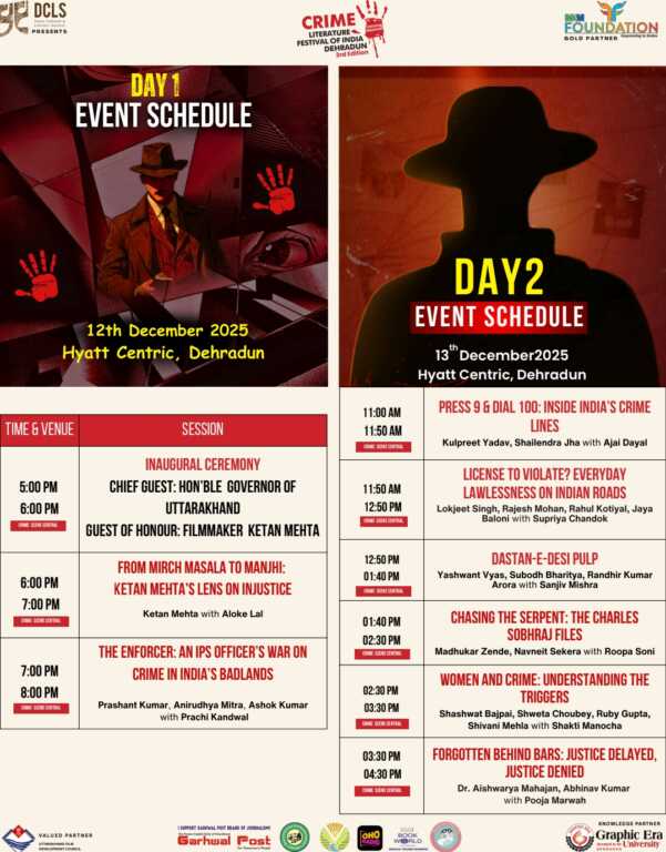 देहरादून में 12 दिसंबर से शुरू हो रहा क्राइम लिटरेचर फेस्टिवल