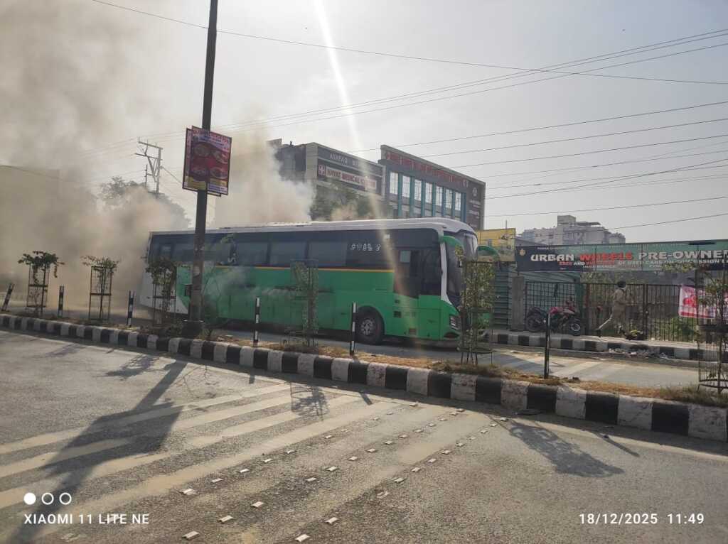 राजधानी के सेंट जूड चौक के पास गुरुवार को एक बड़ा हादसा होते-होते टल गया। तमिलनाडु से ऑल इंडिया टूर पर आए 40 छात्र उस वक्त खतरे के साये में आ गए, जब उनकी चलती बस से अचानक धुआं उठने लगा।