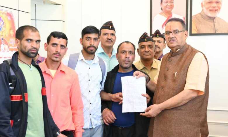 कृषि मंत्री गणेश जोशी को वेतन भुगतान के संबंध में ज्ञापन सौंपते दैनिक श्रमिकों का प्रतिनिधिमंडल