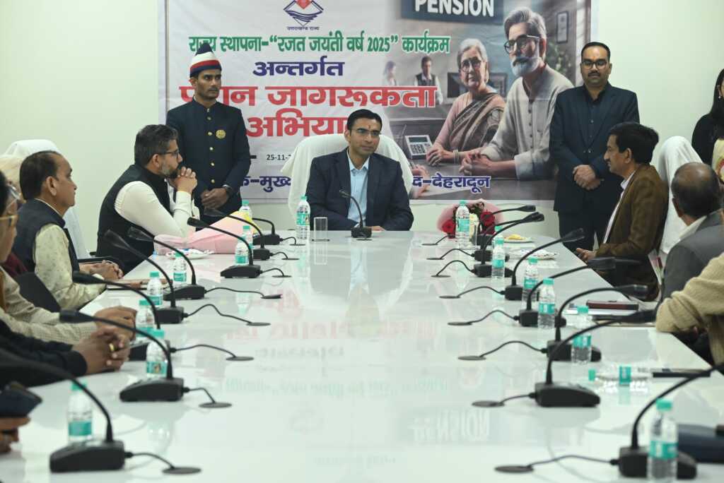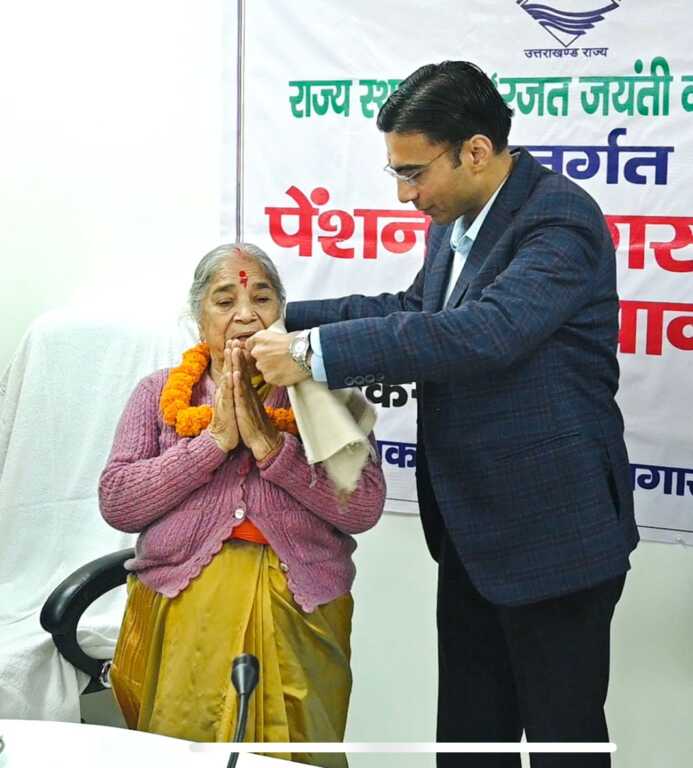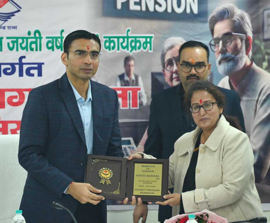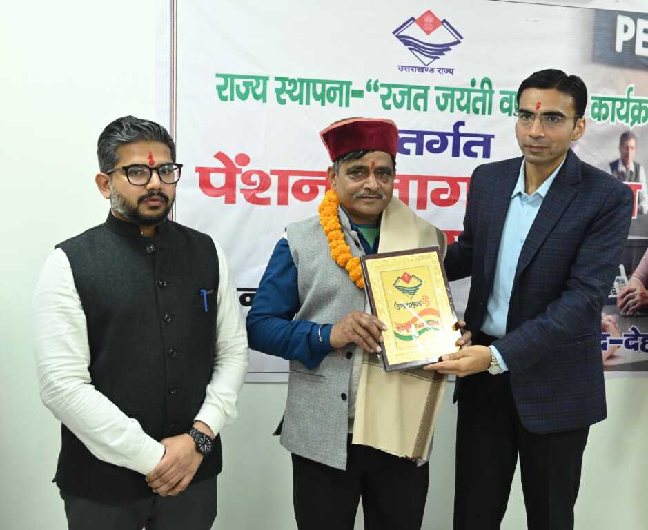 जिलाधिकारी सविन बसंल ने राज्य स्थापना की रजत जयंती पर 25 नवंबर,2025 को मुख्य कोषागार देहरादून में पेंशन जागरूकता एवं निःशुल्क चिकित्सा शिविर का शुभारंभ करते हुए राज्य आंदोलनकारी पेंशनरों को सम्मानित किया।