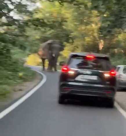 इस बीच एक कार में सवार परिवार को अपनी और बच्चों की जान बचाने के लिए कार से उतरकर भागना पड़ा, हाथी ने वाहनों की ओर किया रुख और आक्रामक तरीके से सूंड उठाकर दहाड़ने लगा,