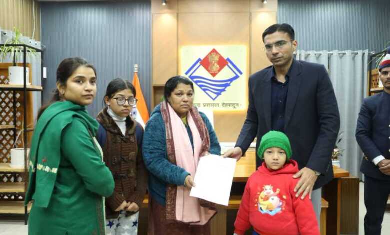 देहरादून, दिनांक 18 दिसम्बर 2025 पति की आकस्मिक मृत्यु के बाद जीवन की कठिन परिस्थितियों से जूझ रही विधवा शांति राणा के मामले में जिला प्रशासन संवेदनशीलता के साथ आगे आया है।