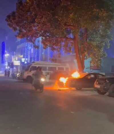 इधर आर्यनगर क्षेत्र में सड़क किनारे खड़ी कार में अचानक लगी आग, आसपास अफरा-तफरी का माहौल।