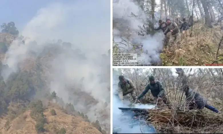 नौ जनवरी से नंदा देवी राष्ट्रीय पार्क के फूलों की घाटी रेंज व गोविंदघाट रेंज में जंगल धू-धूकर जल रहे हैं। वन विभाग के अधिकारियों, कर्मचारियों ने खड़ी चट्टानों पर लगी आग को बुझाने में असमर्थता जताई थी।