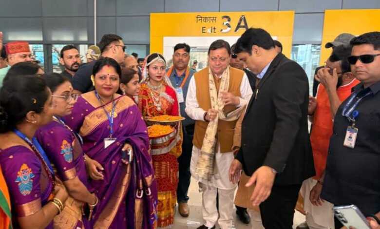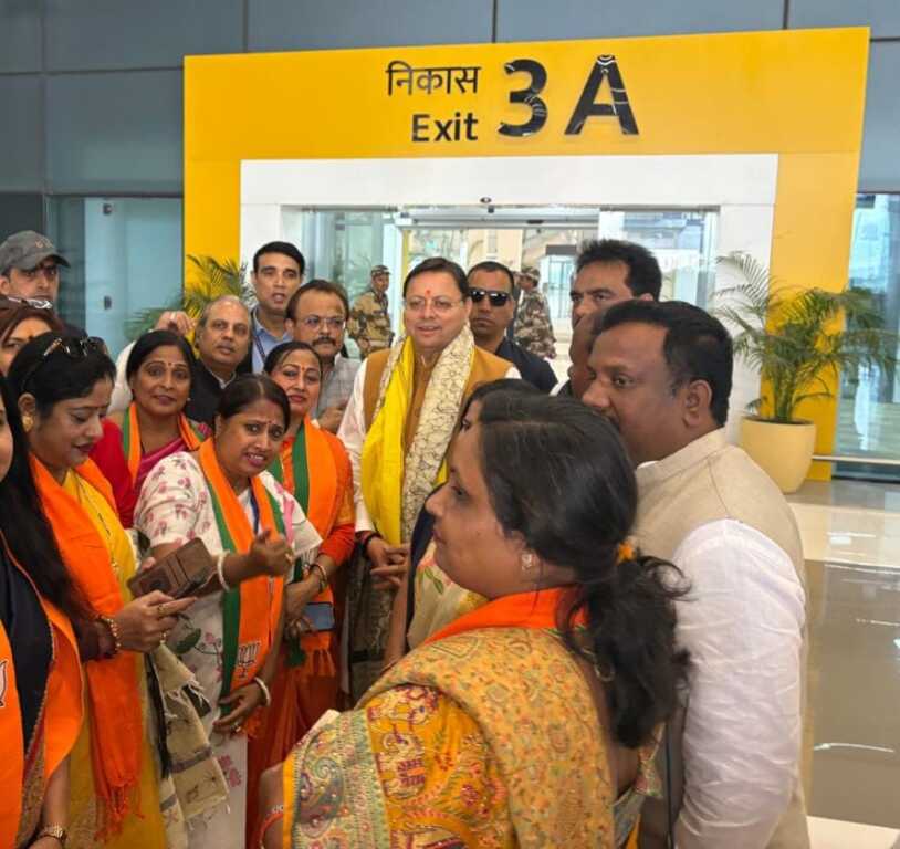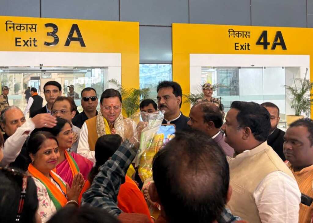 पटना एयरपोर्ट पर मुख्यमंत्री पुष्कर सिंह धामी का भव्य स्वागत