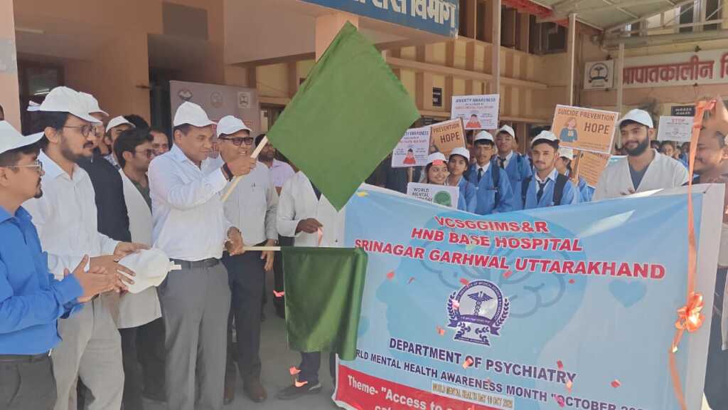विश्व मानसिक स्वास्थ्य दिवस पर रैली को किया फ्लैग ऑफ अपने श्रीनगर प्रवास के दौरान स्वास्थ्य सचिव ने विश्व मानसिक स्वास्थ्य दिवस (World Mental Health Day) के अवसर पर मेडिकल कॉलेज परिसर से आयोजित जागरूकता रैली को हरी झंडी दिखाकर रवाना किया। उन्होंने इस अवसर पर कहा कि मानसिक स्वास्थ्य, शारीरिक स्वास्थ्य जितना ही महत्वपूर्ण है और समाज के हर वर्ग को इसके प्रति जागरूक होने की आवश्यकता है।