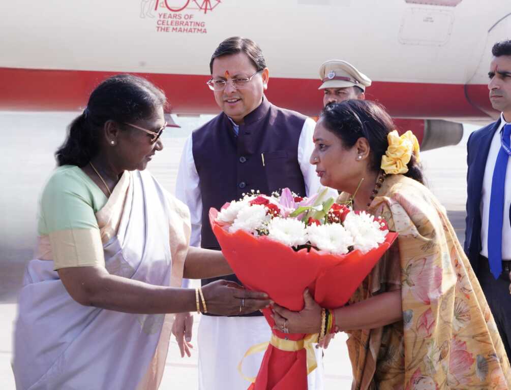 राष्ट्रपति श्रीमती मुर्मु के स्वागत के लिए एयरपोर्ट परिसर में सुरक्षा और प्रोटोकॉल की व्यापक व्यवस्था की गई थी। मुख्यमंत्री पुष्कर सिंह धामी ने राष्ट्रपति का स्वागत करते हुए कहा कि —