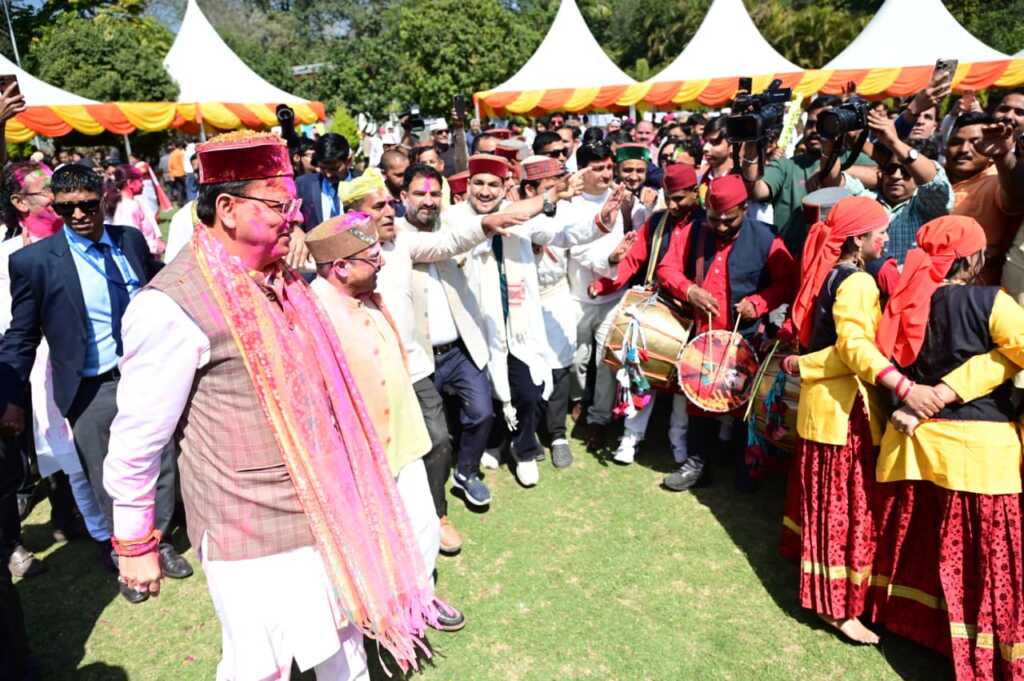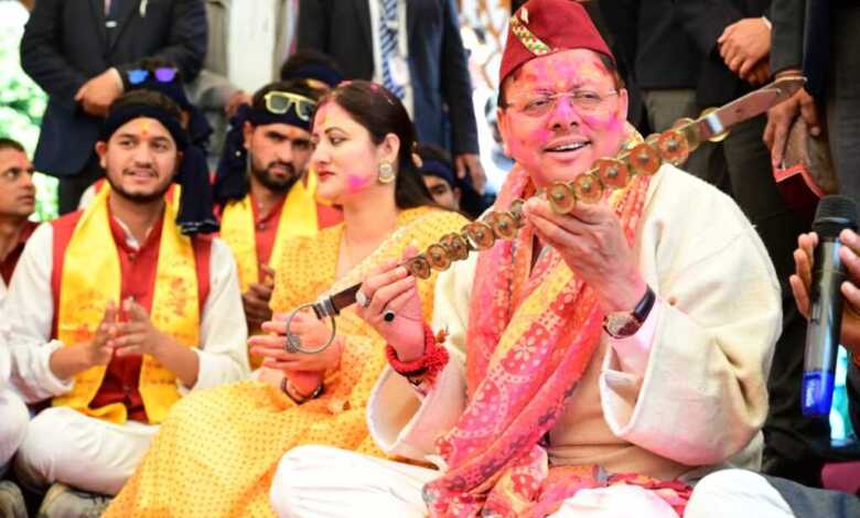 मुख्यमंत्री पुष्कर सिंह धामी भी लोक कलाकारों के संग होली के रंगों में पूरी तरह से रंगे नजर आए। मुख्यमंत्री खुद लोक कलाकारों के साथ थिरकने को मजबूर हो गए।