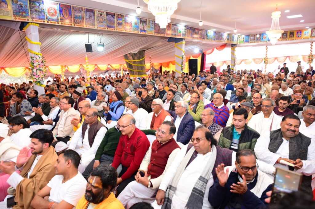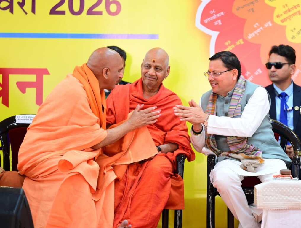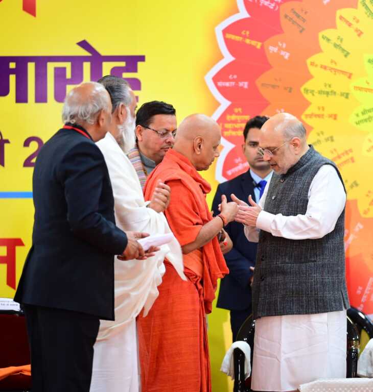 मंच पर केंद्रीय गृह मंत्री अमित शाह, मुख्यमंत्री पुष्कर सिंह धामी, जूना पीठाधीश्वर स्वामी अवधेशानंद गिरी महाराज, परमार्थ निकेतन के अध्यक्ष स्वामी चिदानंद सरस्वती, राम जन्म भूमि ट्रस्ट के कोषाध्यक्ष गोविंद देव गिरी महराज, स्वामी ज्ञानानंद महाराज, स्वामी गोविंदानंद तीर्थ, गढ़वाल सांसद अनिल बलूनी आदि मौजूद हैं।