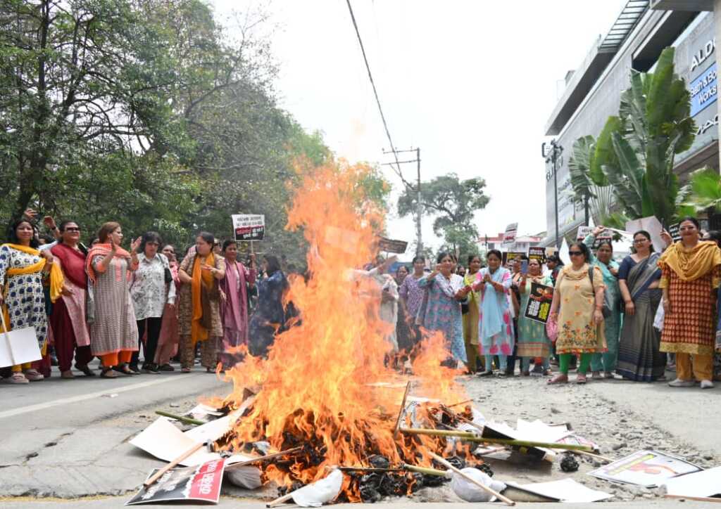 मातृशक्ति ने कांग्रेस एवं उनके सहयोगी दलों का पुतला दहन कर जताया आक्रोश