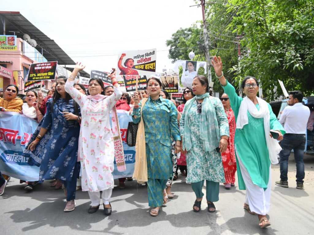 उन्होंने कहा कि जब-जब महिलाओं को अधिकार देने का अवसर आया, तब-तब विपक्ष ने राजनीतिक स्वार्थ के चलते अवरोध खड़े किए। उन्होंने कहा कि आज देश और प्रदेश की मातृ शक्ति जागरूक है और महिला विरोधी मानसिकता रखने वाले दलों को जवाब देने के लिए सड़कों पर उतर रही है।