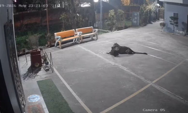 घर के बाहर लगे सीसीटीवी में गुलदार के कुत्ते पर हमले का वीडियो कैद हो गया। जिसमें गुलदार घर के बाहर आंगन में आता हुआ दिख रहा है।