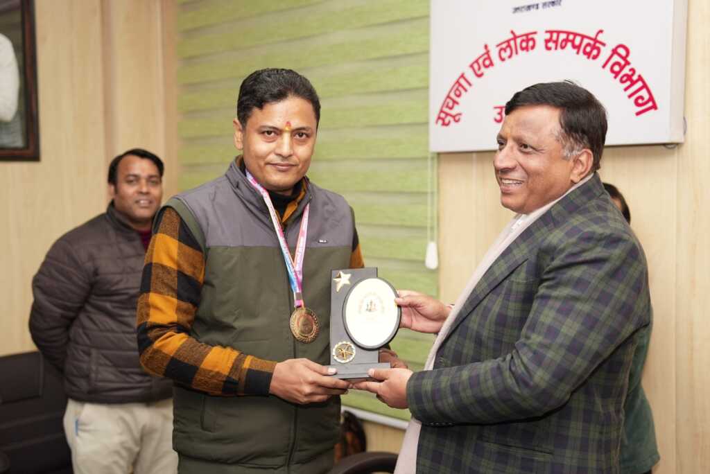 देहरादून 16 दिसम्बर, 2025। उत्तराखण्ड सूचना कर्मचारी संघ (मुख्यालय), देहरादून द्वारा प्रथम इंडोर खेल प्रतियोगिता-2025 का आयोजन किया गया। मंगलवार को प्रतियोगिता के विजयी प्रतिभागियों को महानिदेशक सूचना बंशीधर तिवारी द्वारा पुरस्कार प्रदान किये गये।