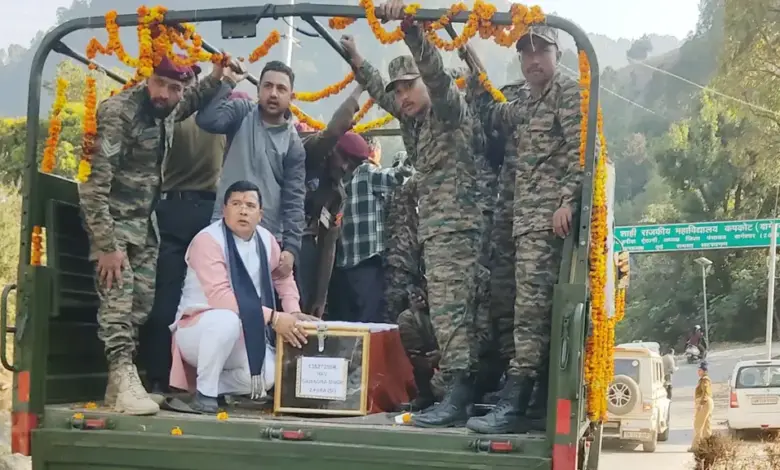 गजेंद्र तेरा नाम रहेगा’ के नारों से पूरा क्षेत्र गूंज उठा। सैन्य सम्मान के साथ सरयू-खीरगंगा संगम पर उनका अंतिम संस्कार किया गया। परिवार और ग्रामीणों ने नम आंखों से वीर सपूत को अंतिम विदाई दी, गर्व और शोक का माहौल रहा।