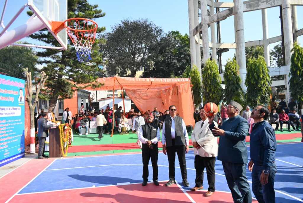 स्व. श्याम दत्त जोशी अंतर विद्यालयी बास्केटबॉल टुर्नामेंट एवं पुस्तक मेला कार्यक्रम में प्रतिभाग करते कैबिनेट मंत्री गणेश जोशी