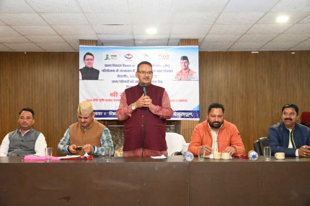 देहरादून, 20 मार्च। कैबिनेट मंत्री गणेश जोशी ने आज सहस्त्रधारा स्थित एक निजी होटल में ग्राम्य विकास विभाग के अंतर्गत संचालित ग्रामोत्थान (रिप) परियोजना के तहत विकास खण्ड रायपुर के आपदा प्रभावित ग्राम पंचायत सेरागांव,