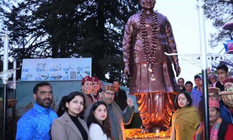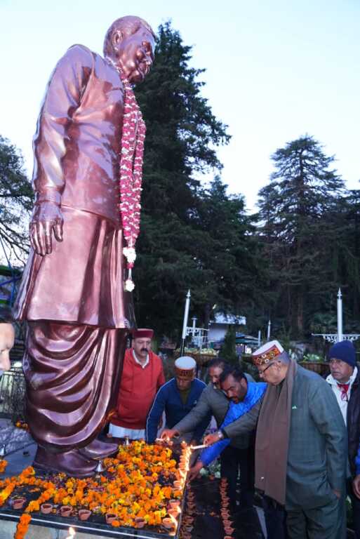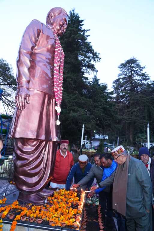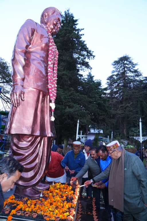 मसूरी अटल उद्यान में पूर्व प्रधानमंत्री स्व. अटल बिहारी वाजपेयी की जयंती की पूर्व संध्या पर 101 दिए जलाकर उनको श्रद्धा सुमन अर्पित करते कैबिनेट मंत्री गणेश जोशी