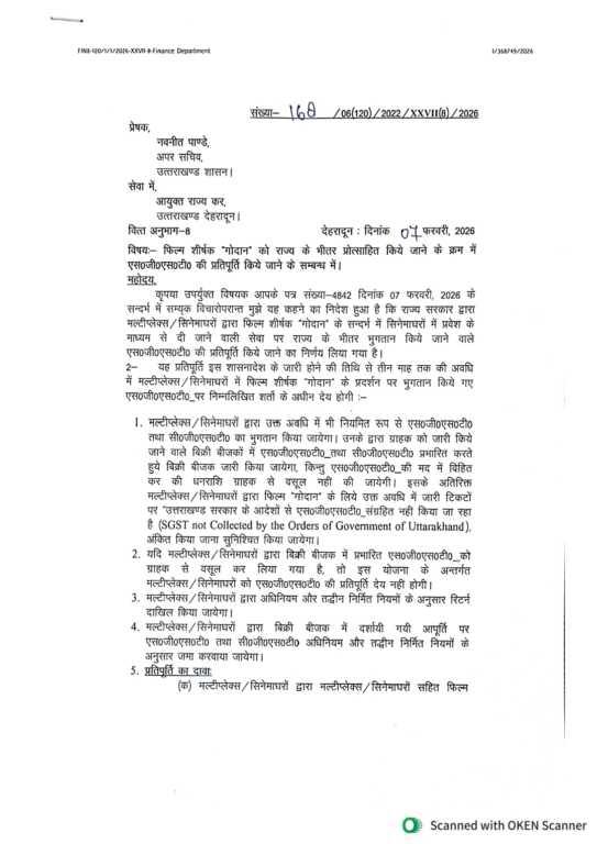 मुख्यमंत्री पुष्कर सिंह धामी के निर्देश पर फिल्म ‘गोदान’ को उत्तराखंड में टैक्स फ्री, शासनादेश जारी