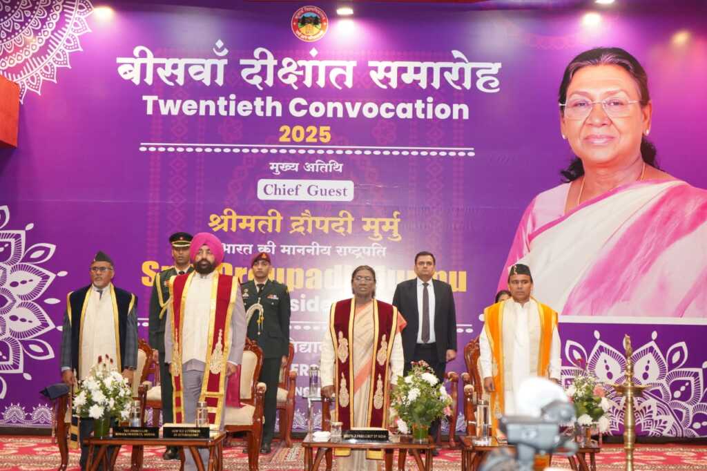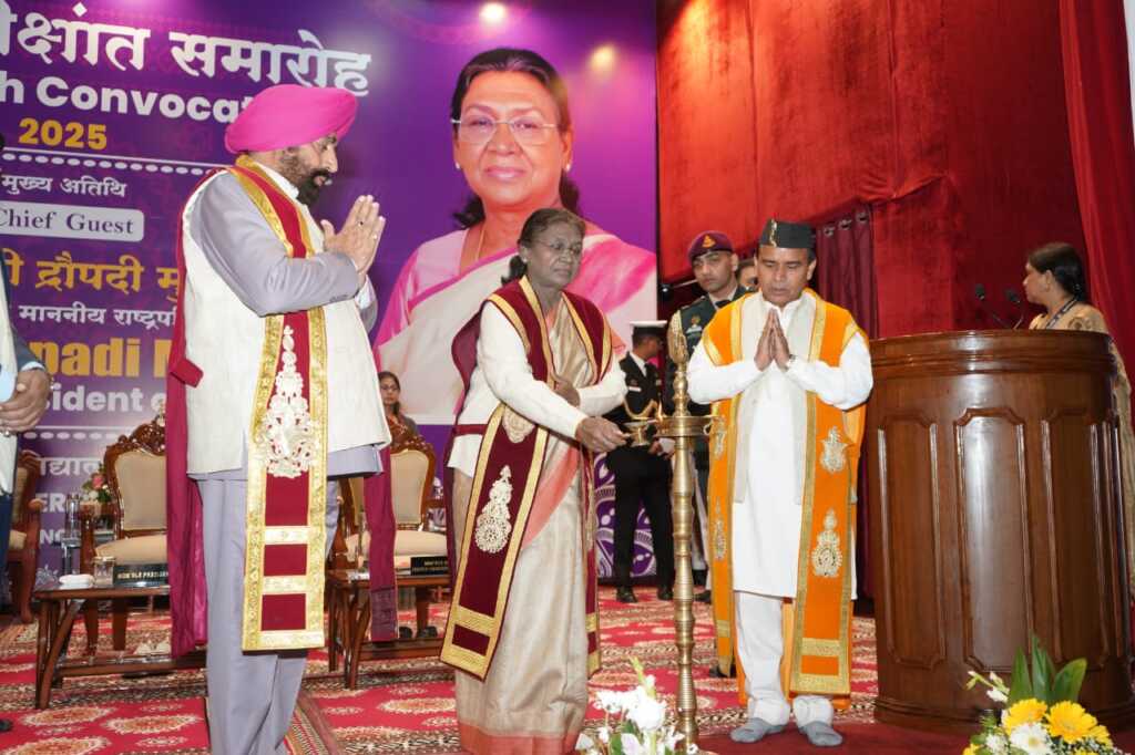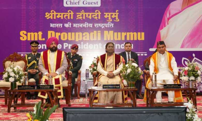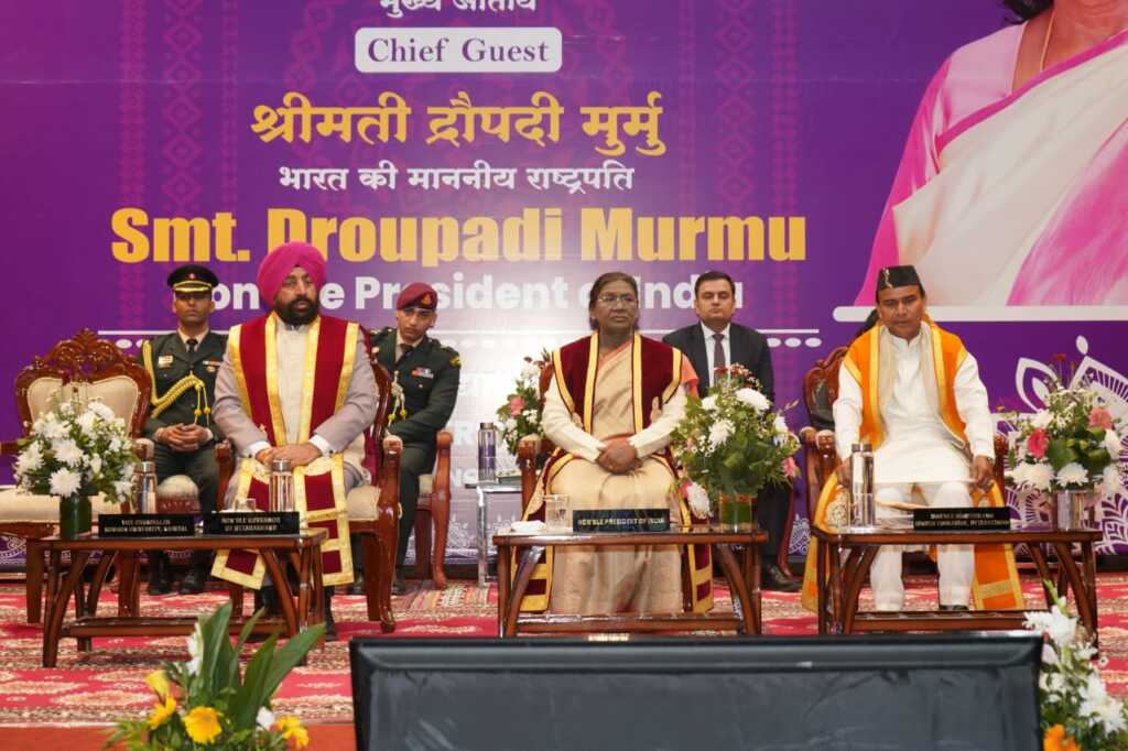 इस अवसर पर राज्यपाल लेफ्टिनेंट जनरल गुरमीत सिंह (सेनि) भी उपस्थित रहे। दीक्षांत समारोह को संबोधित करते हुए राष्ट्रपति ने कहा कि शिक्षा किसी भी राष्ट्र के विकास की नींव होती है इसलिए शिक्षा का उद्देश्य केवल विद्यार्थियों की बुद्धि और कौशल का विकास करना ही नहीं, बल्कि उनके नैतिक बल और चरित्र को भी सुदृढ़ करना होना चाहिए।