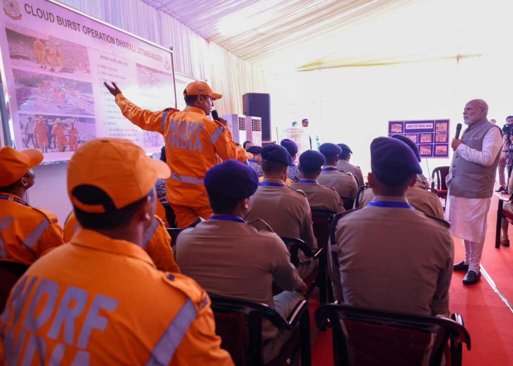 प्रधानमंत्री नरेंद्र मोदी ने धराली, थराली सहित राज्य के आपदा प्रभावित अन्य क्षेत्रों में संचालित राहत एवं बचाव अभियानों में एनडीआरएफ, एसडीआरएफ सहित राज्य सरकार के विभिन्न विभागों के प्रयासों की सराहना की और राहत बचाव कार्यों में जुटे राज्य व केन्द्र सरकार के संगठनों के कार्मिकों से भेंट कर उनके अनुभव साझा किए। प्रधानमंत्री ने आपदा पीड़ितों से भी मुलाकात कर उनका ढांढस बंधाने के साथ ही समुचित मदद का भरोसा दिलाया।